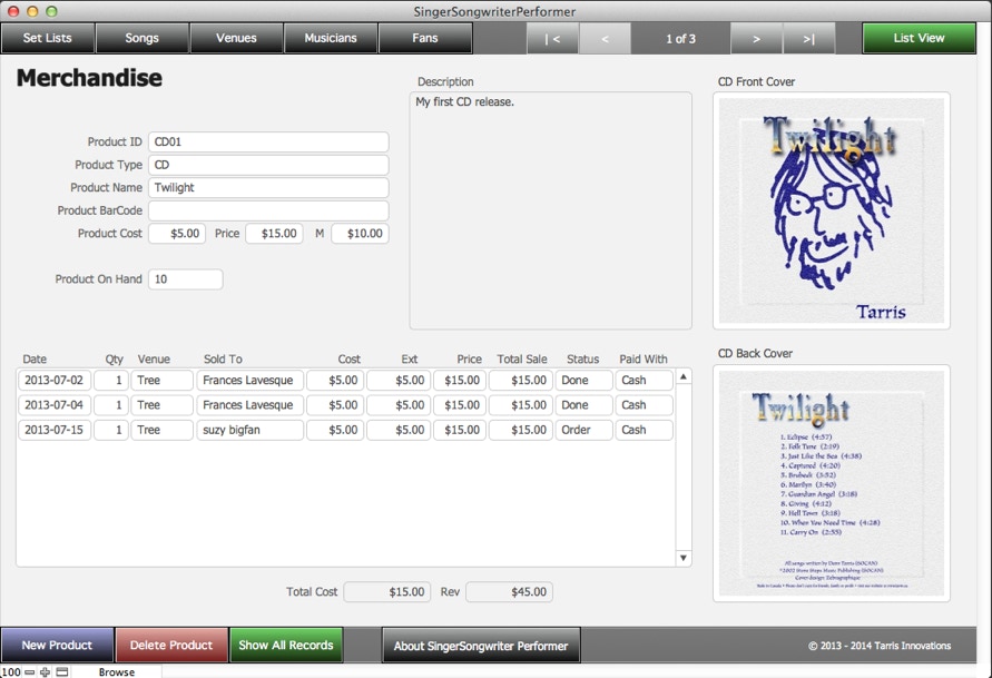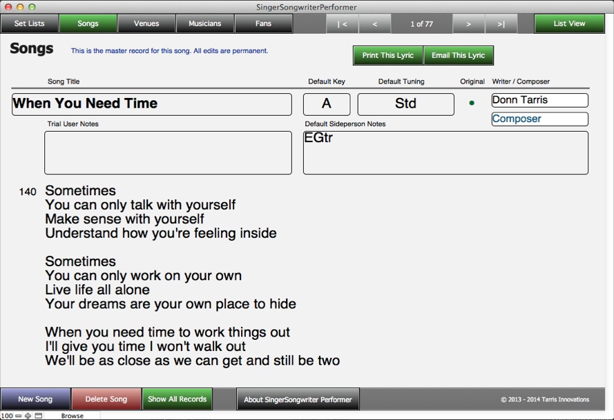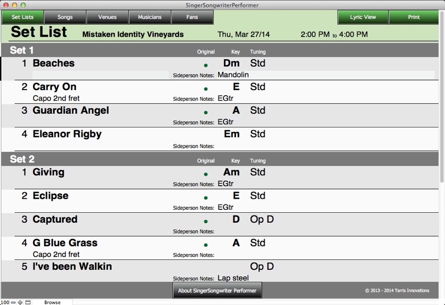 |  SingerSongwriterPerformer | The Artist's Catalogue